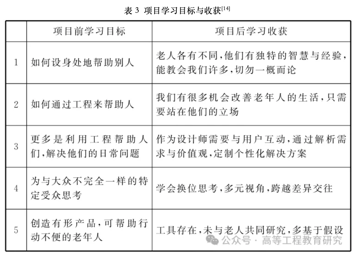 “以人为本的工程”项目结束时,教师团队通过收集学生个人反思及对学生与合作伙伴进行访谈,评估项目持续效果。数据分析发现学生有以下变化。[14]