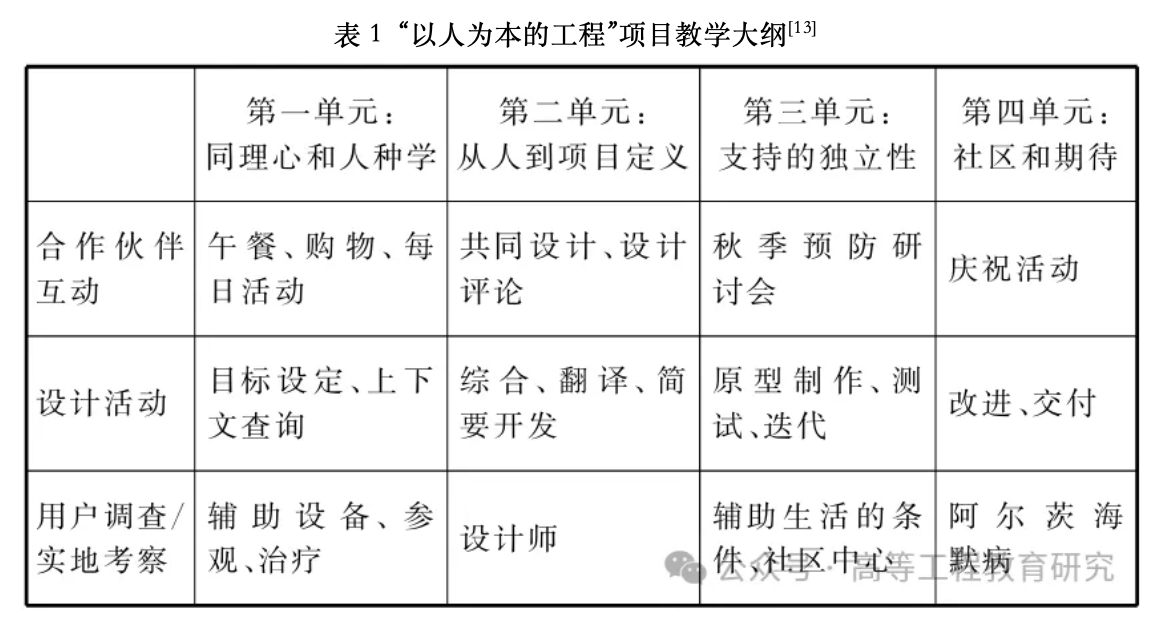 “以人为先”是欧林工学院的教育理念,从学生入学第一年起,艺术、人文、社会科学、企业家精神及用户中心设计便成为教育核心。欧林工程设计为跨学科模式,强调综合、过程与实践,融合人文精神与工程,培养学生用设计思维解决重大社会与环境问题的能力。“以人为本的工程”项目面向设计零基础学生,系统教授端到端设计全流程,将项目置于广泛社会环境中背景化,强调设计决策适当性与周期完整性,学生完成从了解客户需求到设计可实施方案完整过程,同时为非工程学生提供低障碍设计条件。
